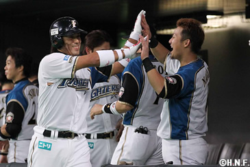 2014-10-15 稲葉と中田で勝利! CSファーストステージ第3戦はお互いに拙攻が続き、初回のオリックスの先頭打者ホームラン以外なかなか点が入らない展開。それでもチャンスで稲葉が代打タイムリーヒットで同点。そして延長10回に中田がこれぞ4番の仕事という特大ホームランで2対1で辛くも逃げ切りソフトバンクホークスとのファイナルステージに今日から戦いの火ぶたが始まります。これに勝って日本シリーズに進出して欲しいですね。日本シリーズになったら意地でも札幌ドームのチケットとりますよ。 頑張れファイターズ!